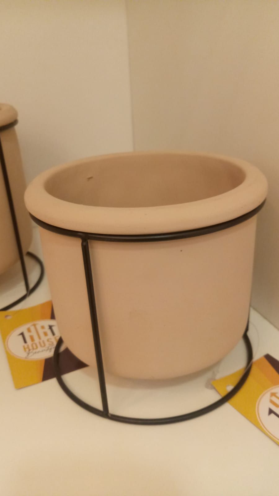 Cachepot em Cimento com Suporte em Metal G - Mart